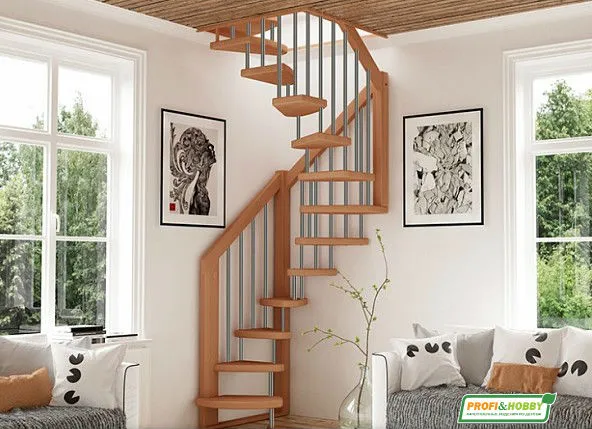 Лестница изготовлена из древесины хвойных пород. Базовый комплект включает в себя деревянные элементы лестницы и ограждения без какого-либо покрытия. Поставляется в разобранном виде, упакованная в ящик. Монтаж производится силами двух человек, в соответствии с указаниями, приведёнными в паспорте лестницы.