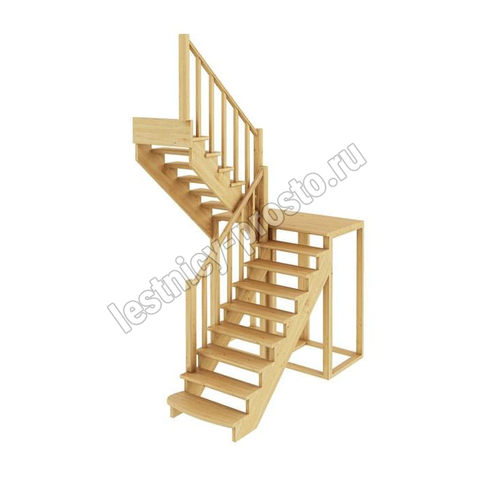 Базовый комплект включает в себя деревянные элементы лестницы с подступёнками и ограждения без какого-либо покрытия. Стандартное ограждение можно заменить любым на ваш вкус (стоимость может измениться).