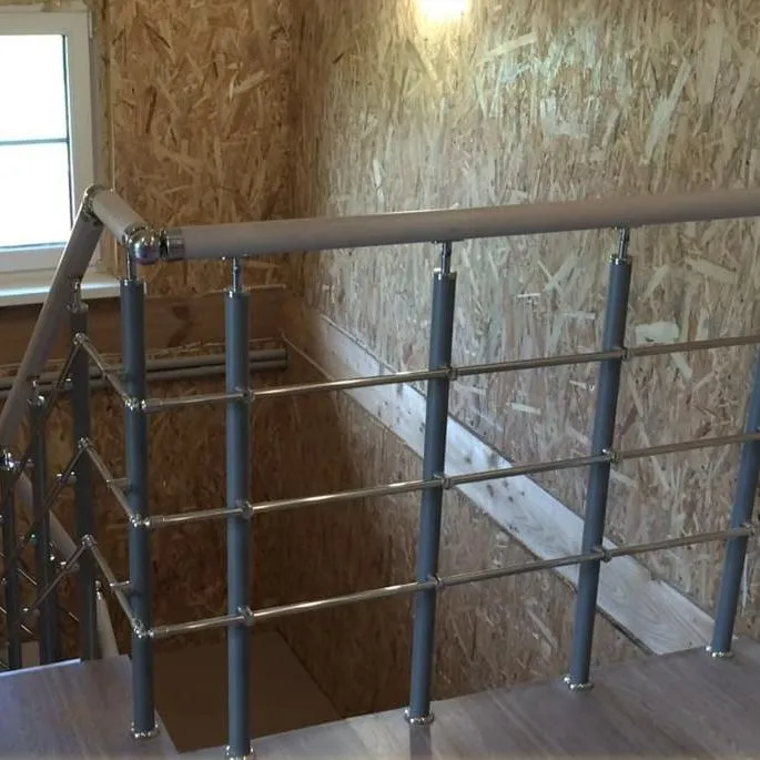 6 стоек из нержавеющей стали (устанавливаются через 1 ступень) окрашеных в цвет каркаса, диаметром 38 мм,