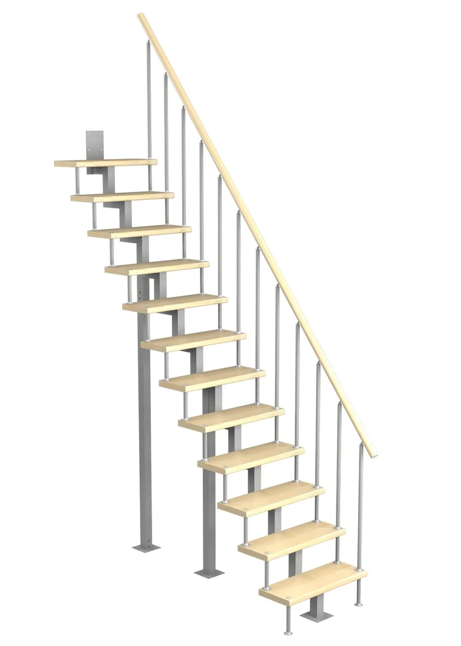 Модульная малогабаритная лестница Линия 2700-2925, Серый, Сосна, Нержавеющая сталь