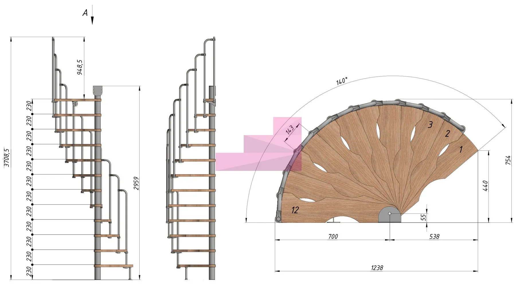 | Винтовая лестница PROSTO MINI 70×140 см, h322-345 см |