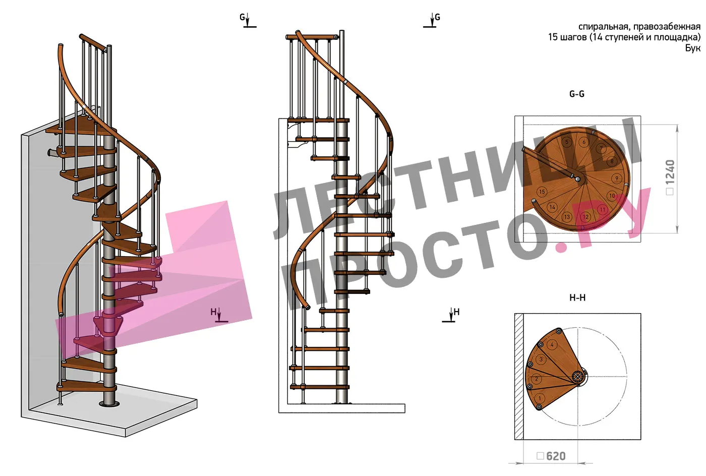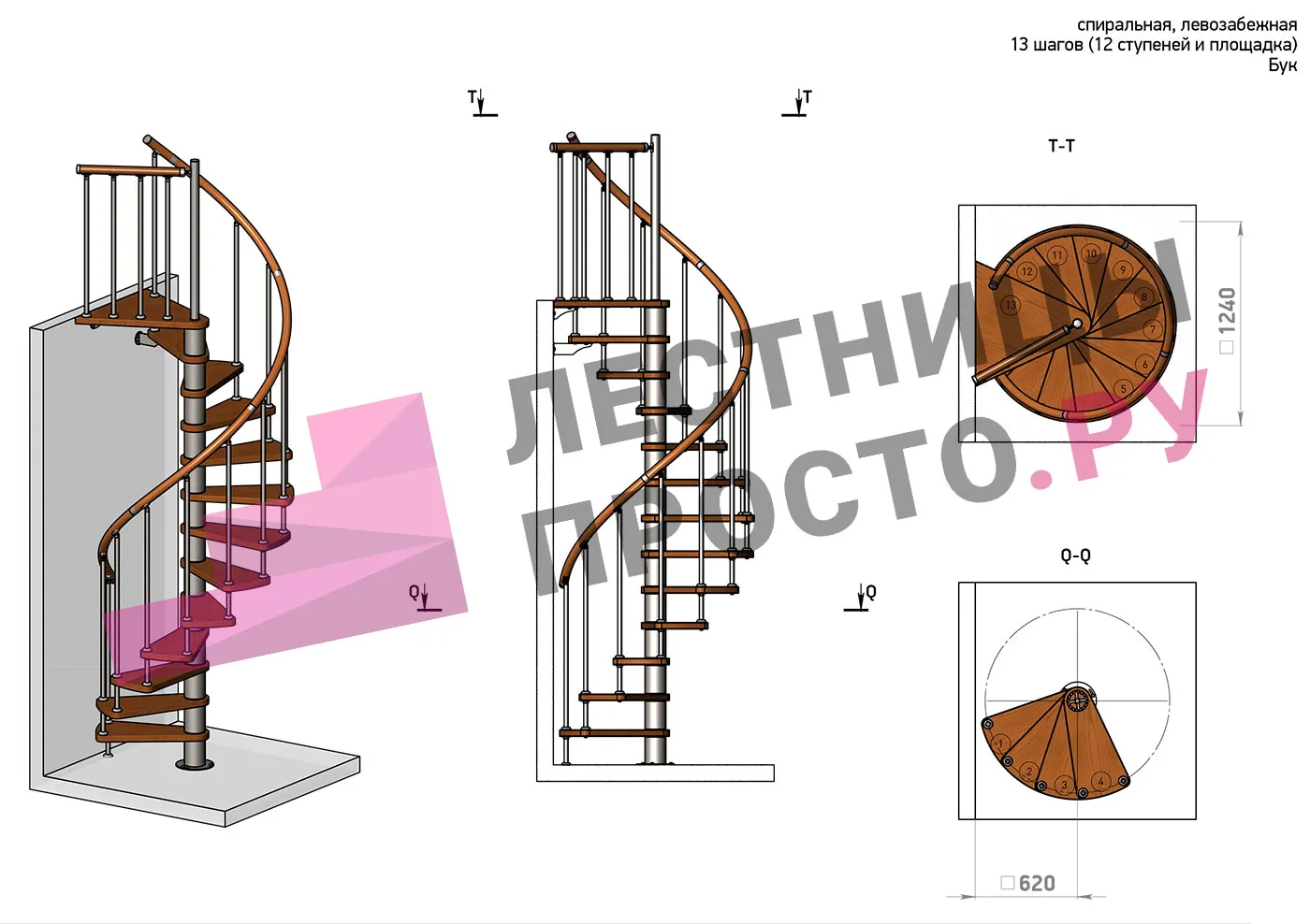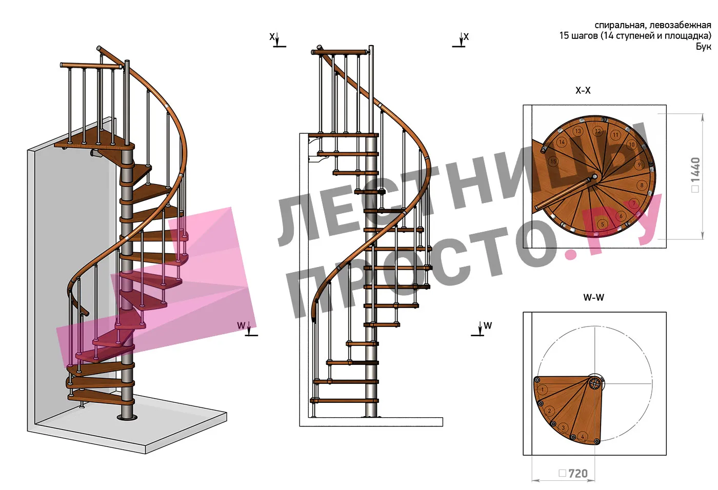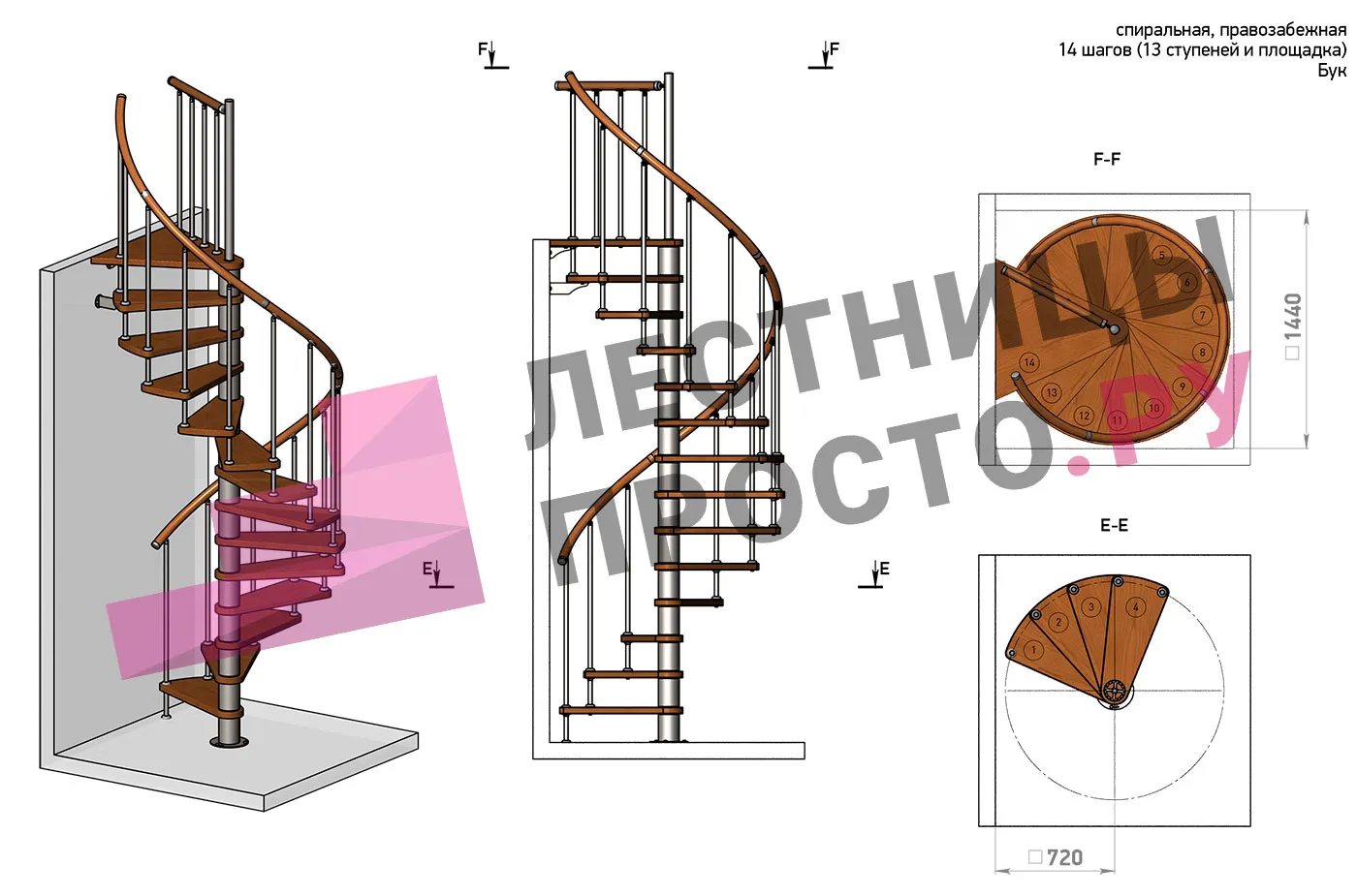 Решение об ориентации поворота принимается при сборке лестницы (комплект собирается и в правозабежную, и в левозабежную лестницу).