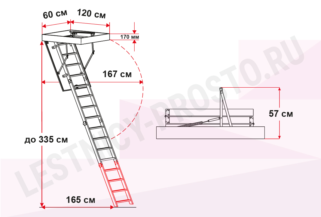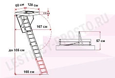 Модель EXTRA идеальна для условий, когда чердак плохо утеплен и требует дополнительной теплоизоляции. По контуру короба одинарный уплотнитель. Лестница имеет нескользящие ножки, которые идеально прилегают к земле, предотвращают появление царапин на поверхности пола и придают эстетичный вид после ее резки. 4-х секционная складная чердачная лестница. Высота потолка до 3350 мм.