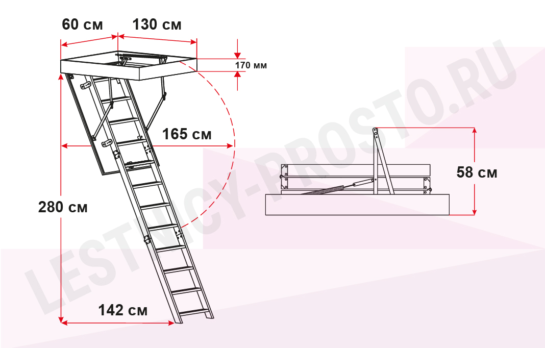 Чердачная лестница OMAN MAXI EI45 60×130 см, h-280 см