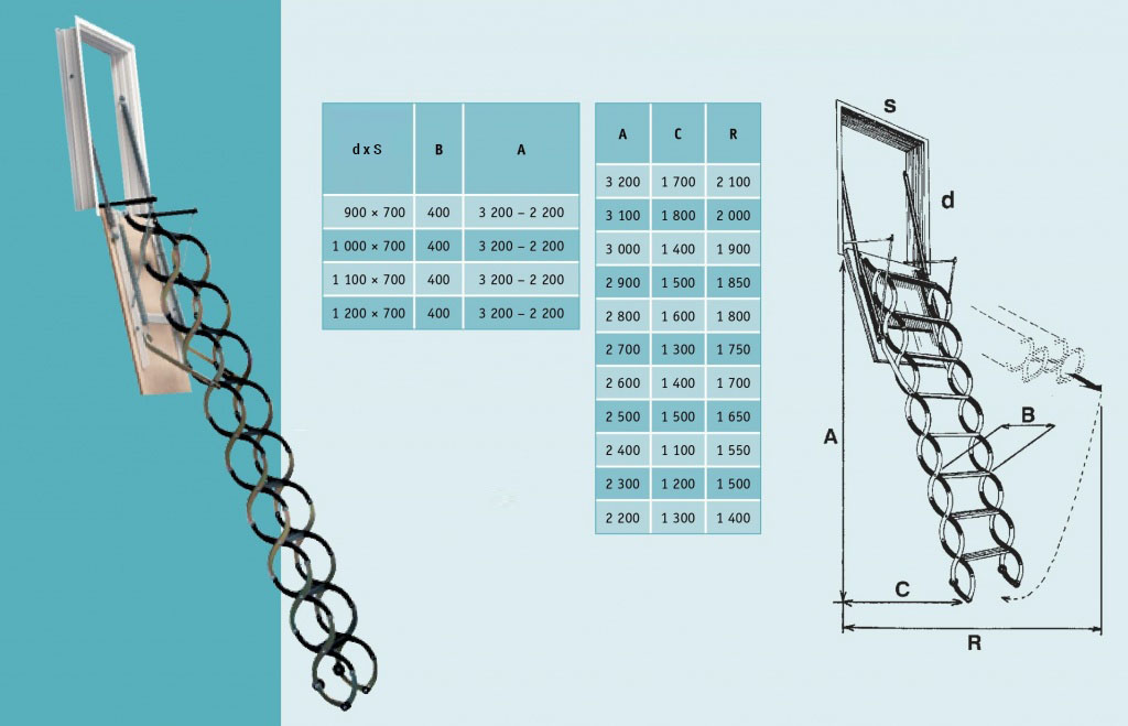 Можно увеличить высоту лестницы с помощью дополнительных секций. Одна секция позволяет увеличить высоту на 25 см, возможна установка не более 2 доп.секций