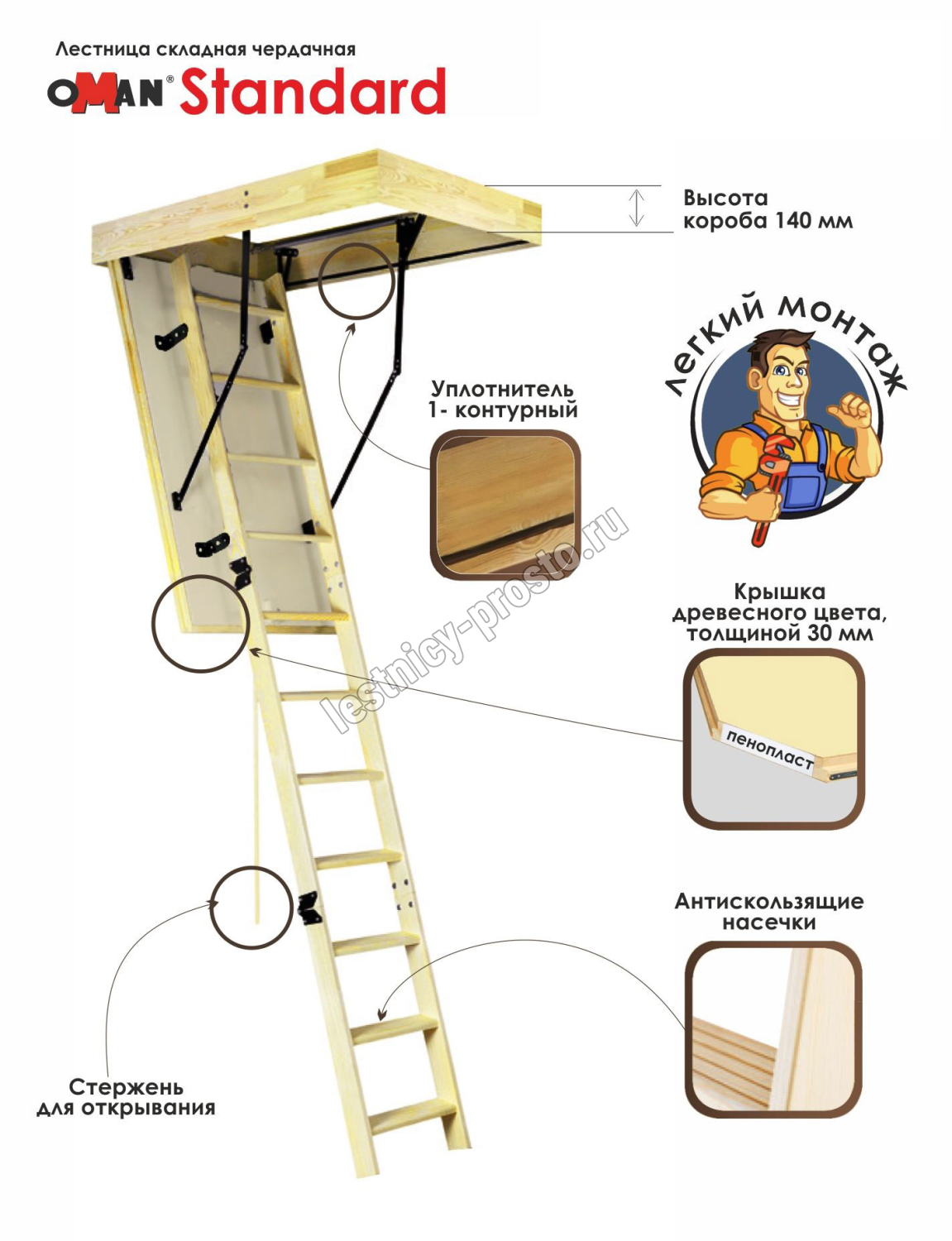 Лестница снабжена фирменным замком OMAN, защищенным от замерзания при низких температурах.
