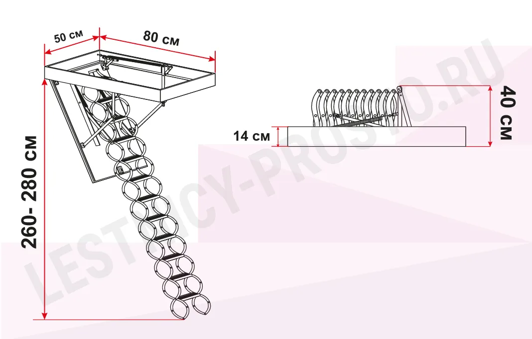 Металлическая чердачная лестница LST оснащена энергосберегающей термоизоляционной крышкой люка белого цвета. По периметру люка установлен контур уплотнения, обеспечивающий высокую степень герметичности. Благодаря «ножничной» системе складывания в сложенном виде лестница очень компактна и имеет небольшой размер крышки люка. S-образные боковые элементы лестницы выполняют роль поручней и придают лестнице современный вид.