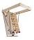 В изготовлении лестницы используется дерево хвойных пород. Лестница оснащена утепленным двусторонним белым люком, который практически не заметен на потолке. В случае необходимости крышку люка можно перекрасить в любой другой, подходящий для интерьера цвет.