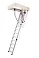 Складная 3-х секционная чердачная лестница. Рабочая поверхность полностью выполнена из алюминия. Термоизоляционная крышка типа "сэндвич" имеет усиленную теплозащиту, облицована с двух сторон ДВП белого цвета. По контуру короба имеется уплотнитель; Все металлические элементы лестницы покрыты порошковой краской.