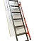 Складная трехсекционная металлическая лестница выручит в помещениях с высоким потолком (до 3660 мм). Лестницу легко собрать самостоятельно.