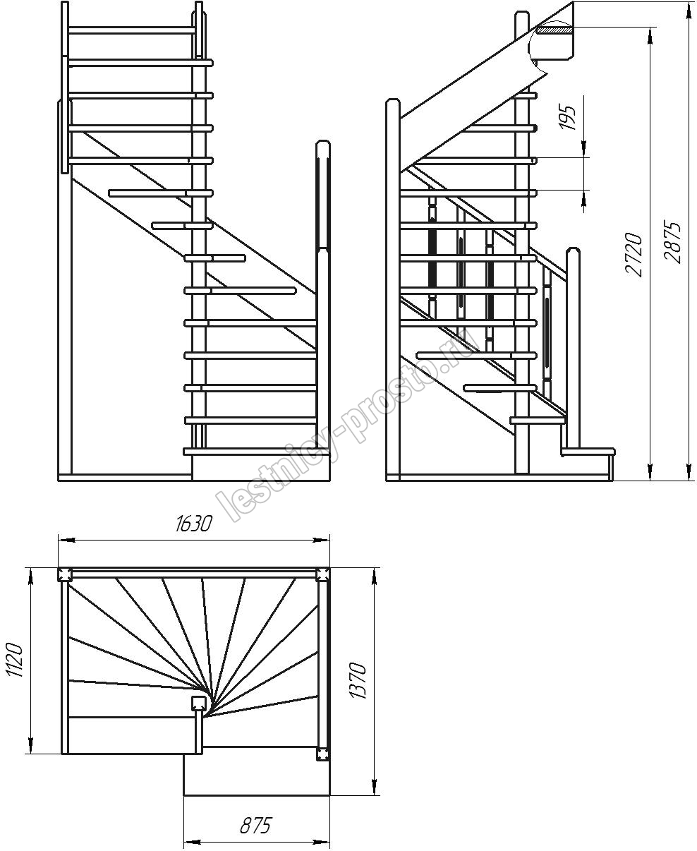 Высота лестницы 2720 - 2920 мм