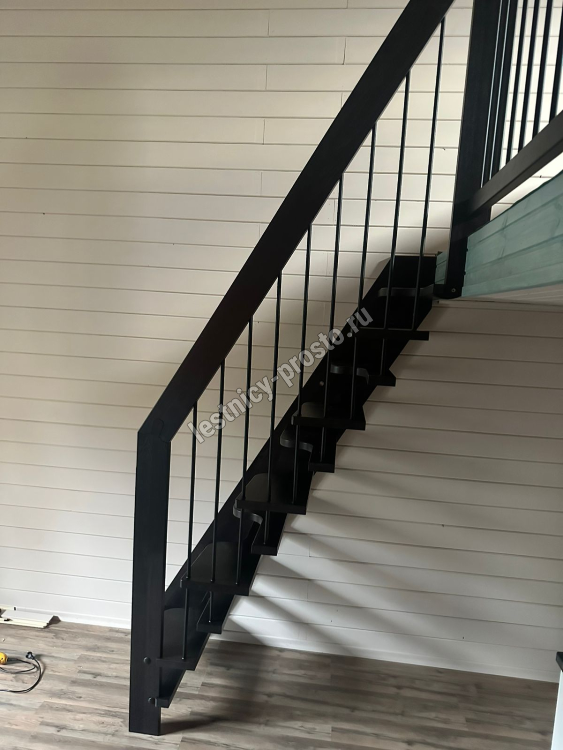 Лестница Prosto Studio 720 гусиный шаг имеет компактную конструкцию на подвесах