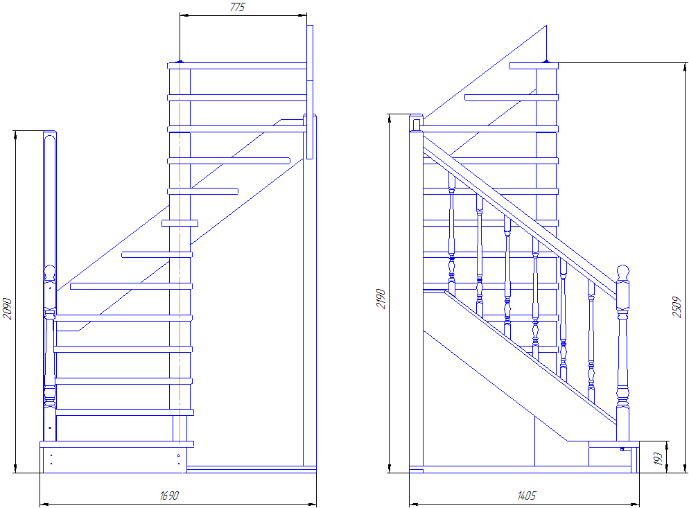 Высота лестницы 2700 мм