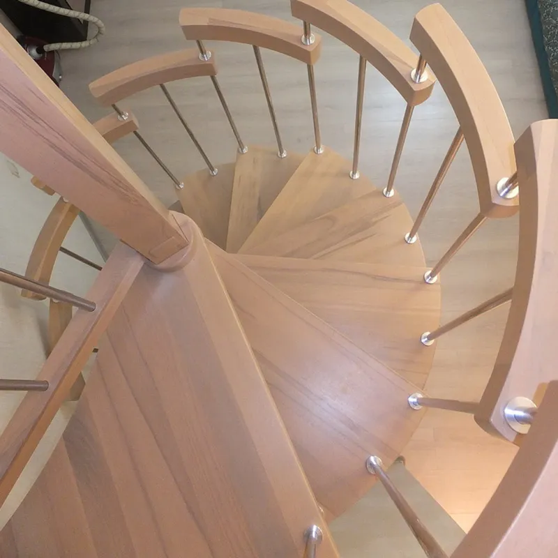 Ступени и поручень лестницы изготовлены из сращенного бука, остальные элементы лестницы (тетивы, столбы, балясины...) из массива сосны.