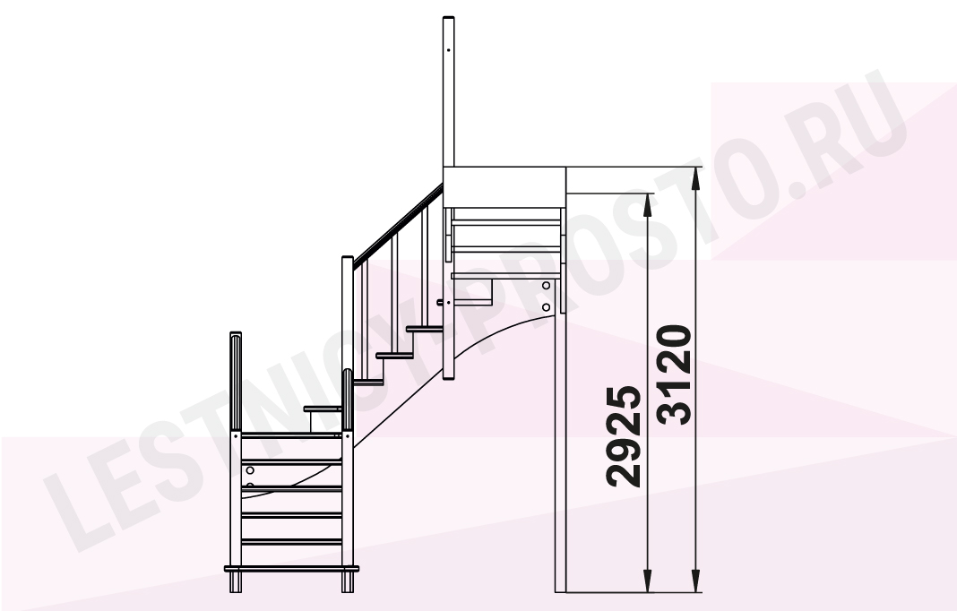 Ступени и поручень лестницы выполнены из бука, остальные элементы из сосны. Возможно изготовление данной модели полностью из бука.