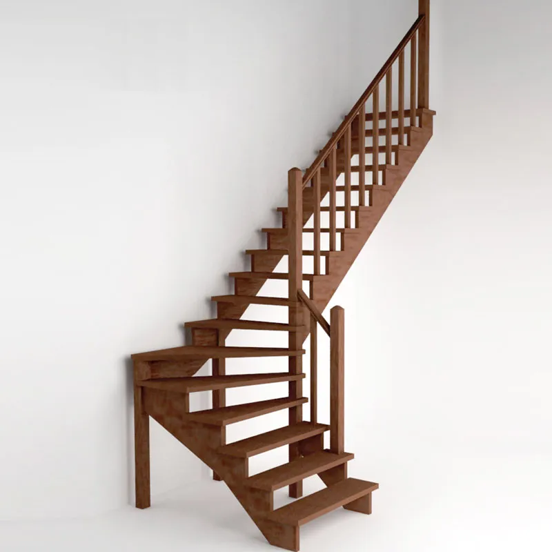Ступени и поручень лестинцы изготовлены из бука, остальные элементы из сосны. Возможно изготовление данной модели полностью из бука. Базовый комплект включает в себя деревянные элементы лестницы и ограждения без какого-либо покрытия.