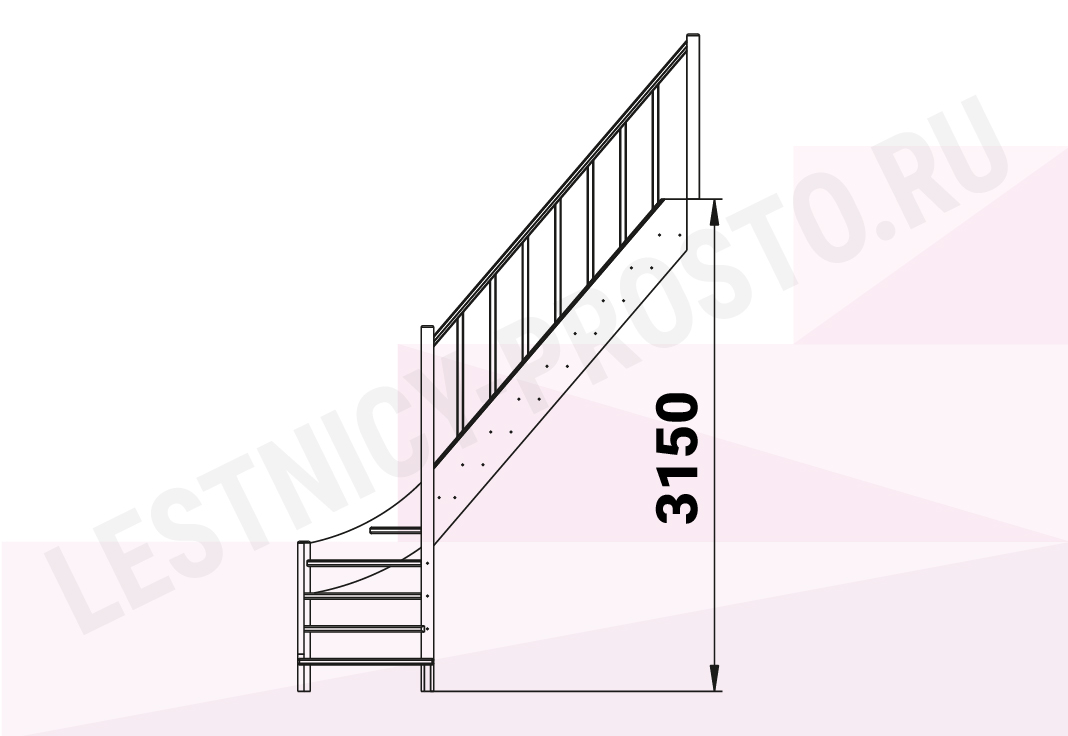 Базовый комплект включает в себя деревянные элементы лестницы и ограждения без какого-либо покрытия.
