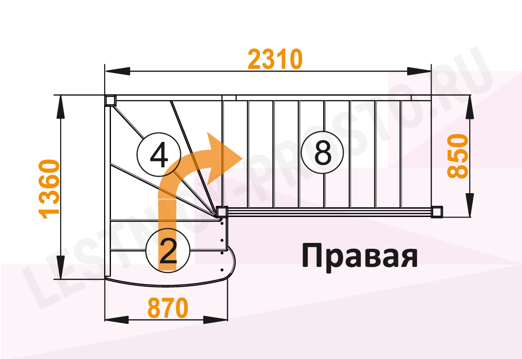 Лестница ЛС-07М/5 с поворотом направо