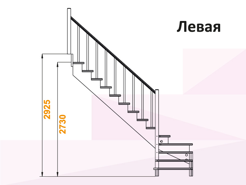 Ступени и поручень лестницы изготовлены из дуба, остальные элементы из сосны.