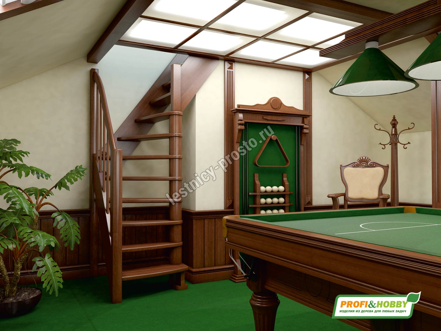 Ступени и поручень лестницы изготовлены из дуба, остальные элементы из сосны.