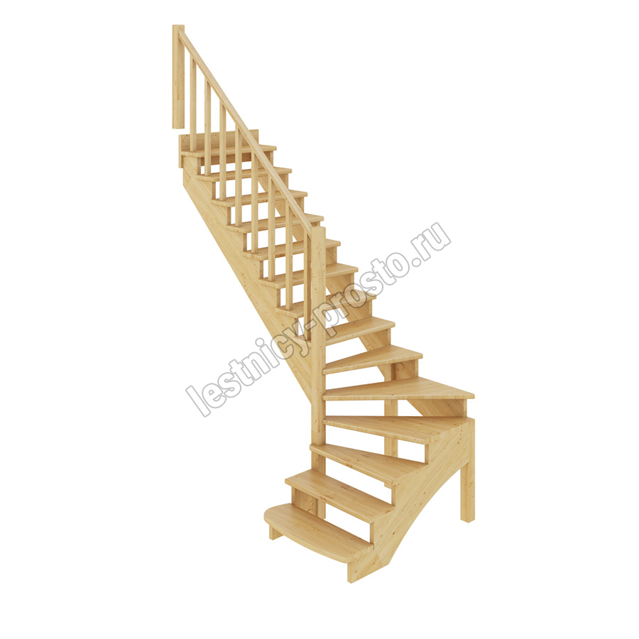 В производстве лестницы К-001м/1 под покраску используется сосна с небольшими изменениями цвета, что практически не влияет на ее механические свойства и почти незаметно при покраске в темные цвета. Базовый комплект включает в себя элементы лестницы и ограждения без какого-либо покрытия.