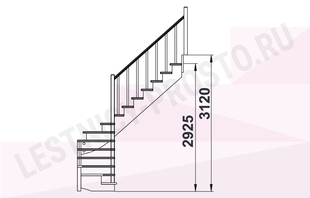 Высота лестницы 2925 - 3120 мм