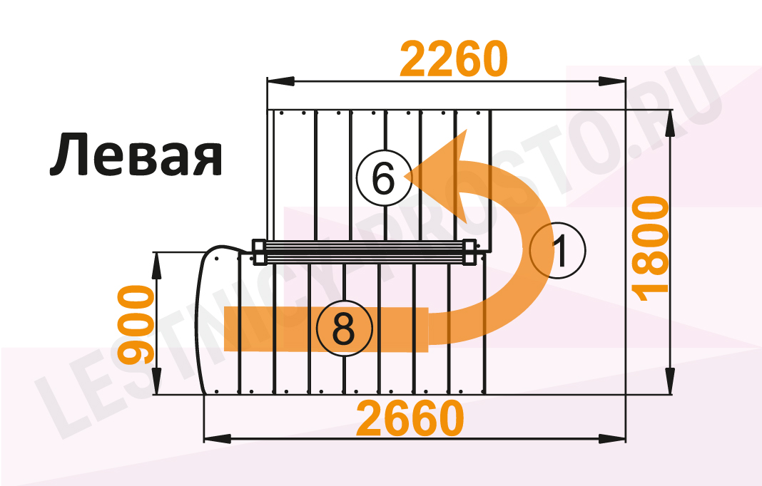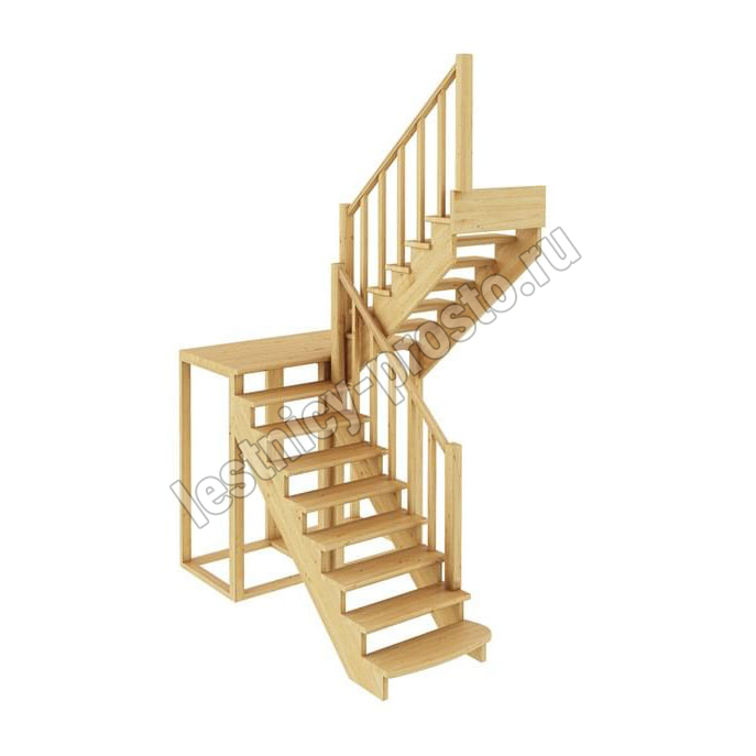 Базовый комплект включает в себя деревянные элементы лестницы с подступёнками и ограждения без какого-либо покрытия. Стандартное ограждение можно заменить любым на ваш вкус (стоимость может измениться).