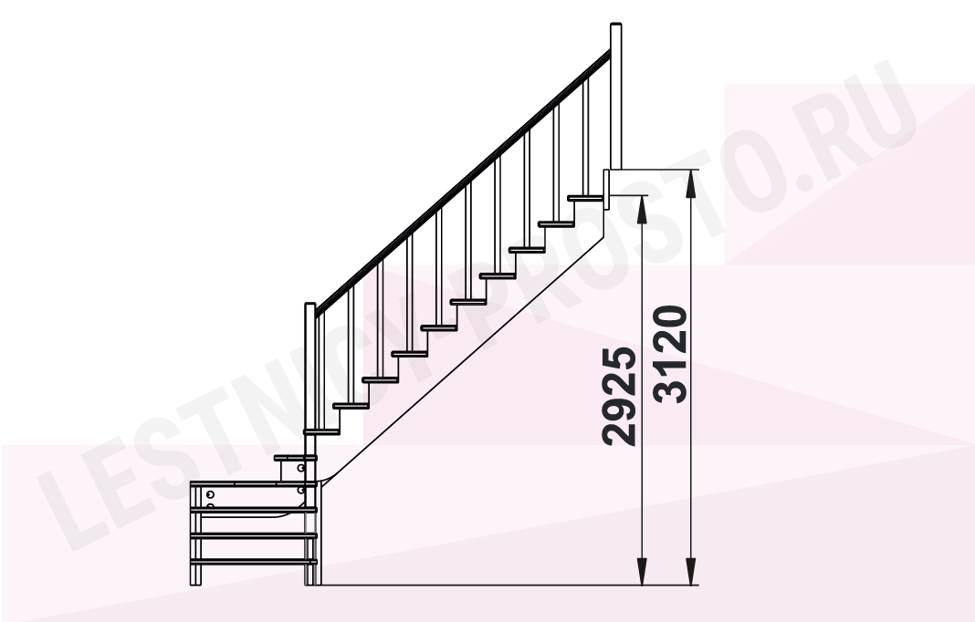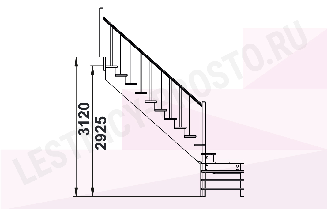 Высота лестницы 2925 - 3120 мм