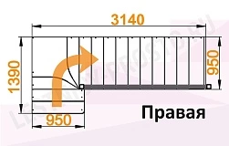 Схема лестницы К-031М/3 с поворотом направо