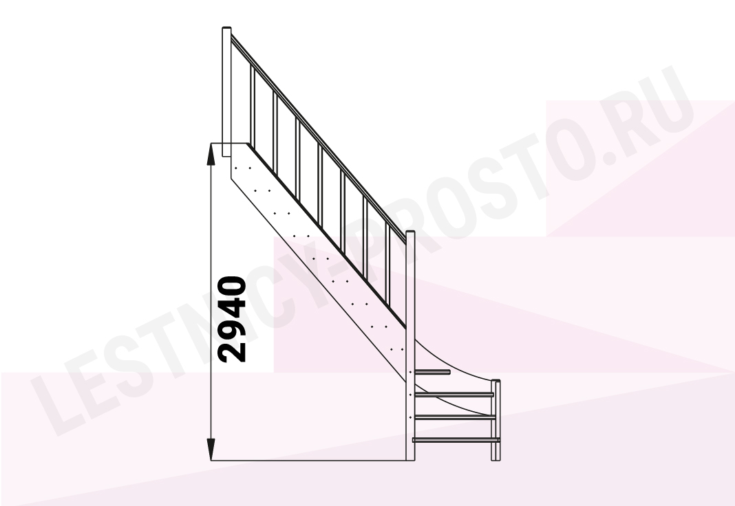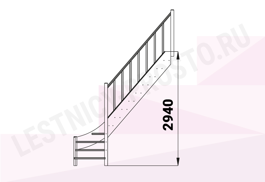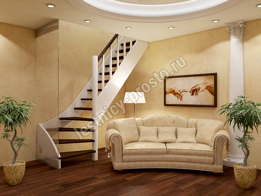 Базовый комплект включает в себя деревянные элементы лестницы и ограждения без какого-либо покрытия.