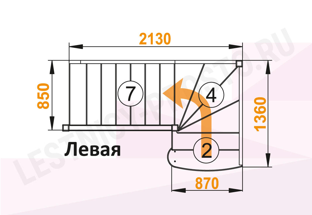 Схема лестницы ЛС-07М/4 с поворотом налево