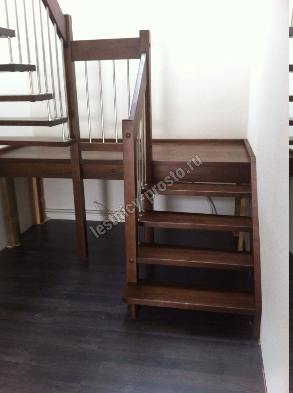возможна комбинированная лестница: из сосны (ступени бук, ясень, дуб);
