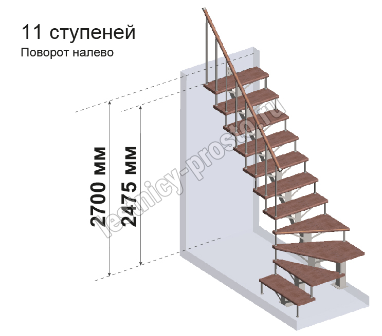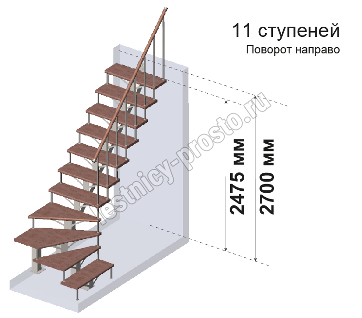 Комплект для Г-образной лестницы MONO h270 из 11 ступеней.