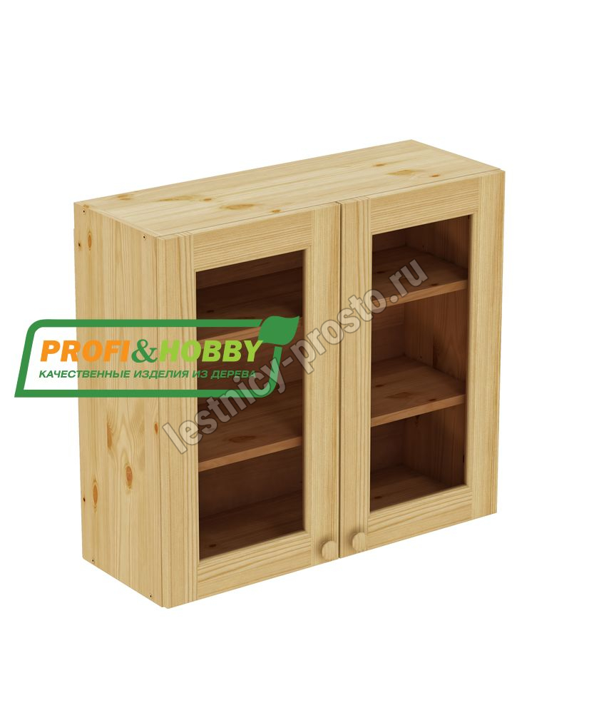 Шкаф навесной 800 х 300 х 720 под стекло,сосна, бесцветный акриловый лак