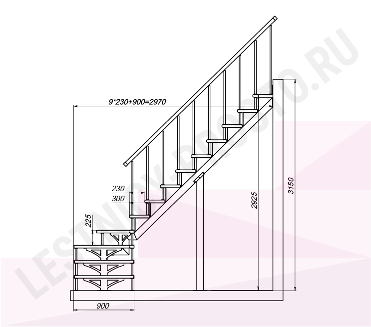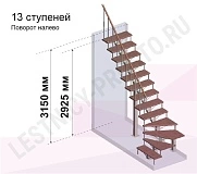 Лестница PROSTO MONO Г-образная h315 см, ступени лиственница