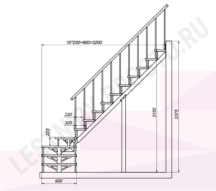 - таким образом вы получаете возможность увеличить общую высоту подъёма лестницы до необходимой.