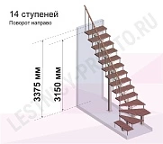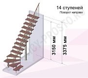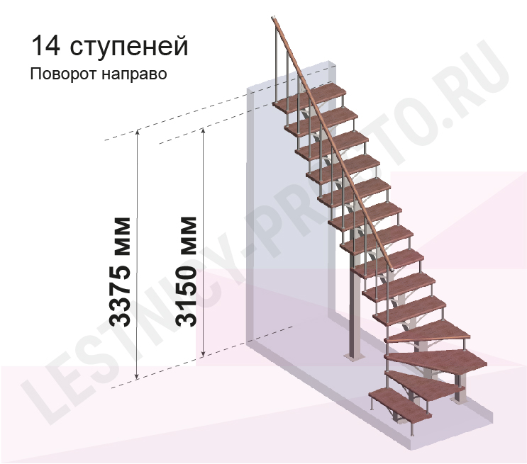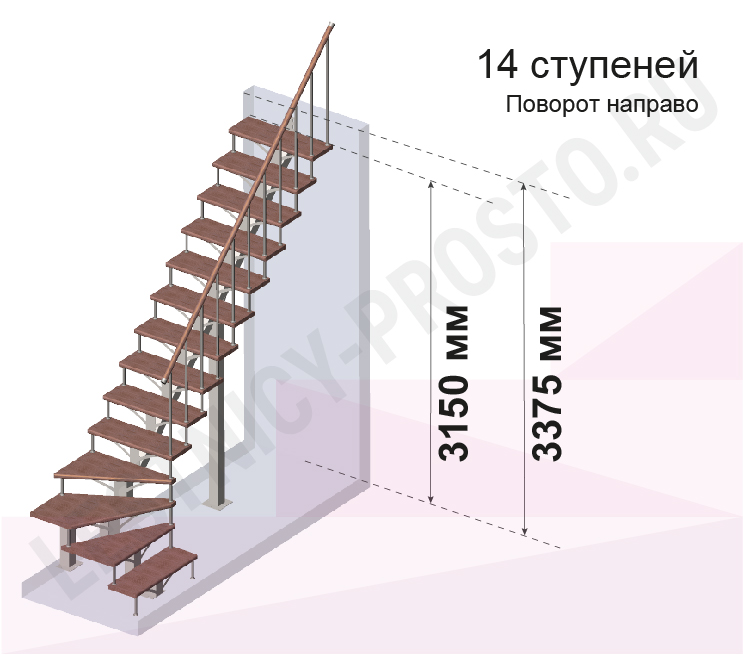 Лестница PROSTO MONO Г-образная h337.5 см, ступени лиственница