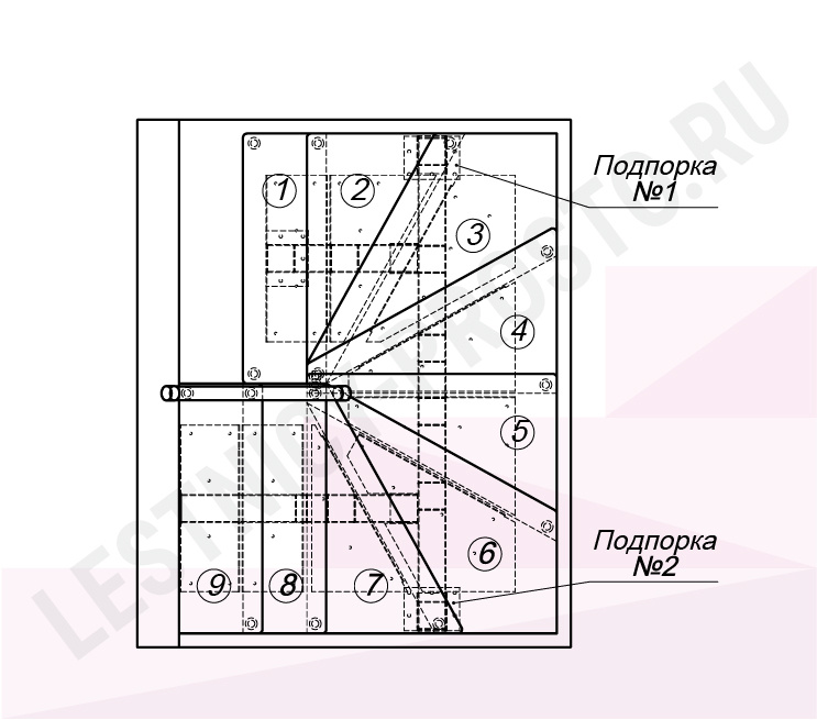Высота лестницы 2025 - 2250 (9 ступеней) мм