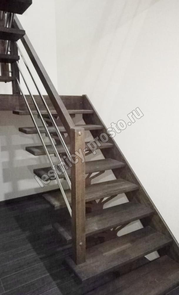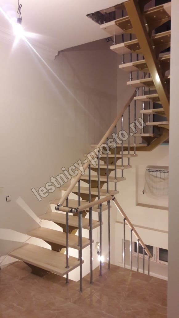 Лестница PROSTO MONO П-образная, h225 см, ступени бук