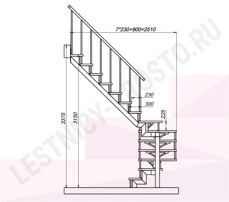 Под заказ возможно изготовление каркаса лестницы PROSTO MONO с поворотом начинающимся с любой ступени, а также, возможно реализовать поворот через площадку. Звоните нам по любым возникающим вопросам, мы поможем сориентироваться и сделать правильный выбор.