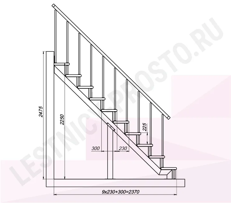 Лестница PROSTO MONO прямая, h247.5 см, ступени бук
