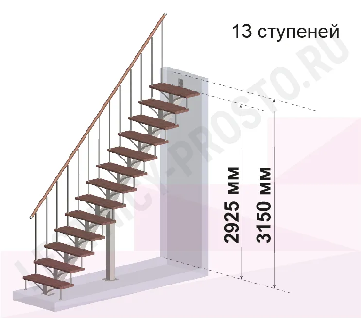 Высота лестницы 2925 - 3150 мм