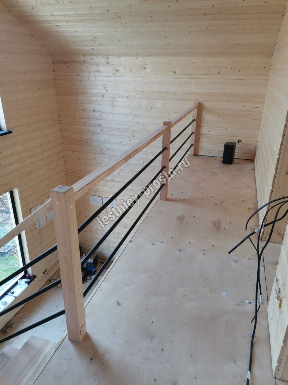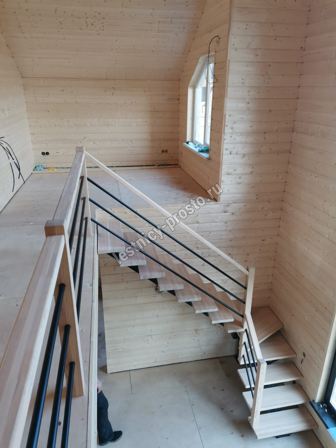 Лестница PROSTO MONO STEP TRINITY г-образная забежная, ступени берёза с ограждением