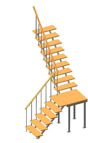 Поворот на 90° реализован посредством поворотных ступеней, высота поворота определяется параметрами вашего помещения и размерами проёма.