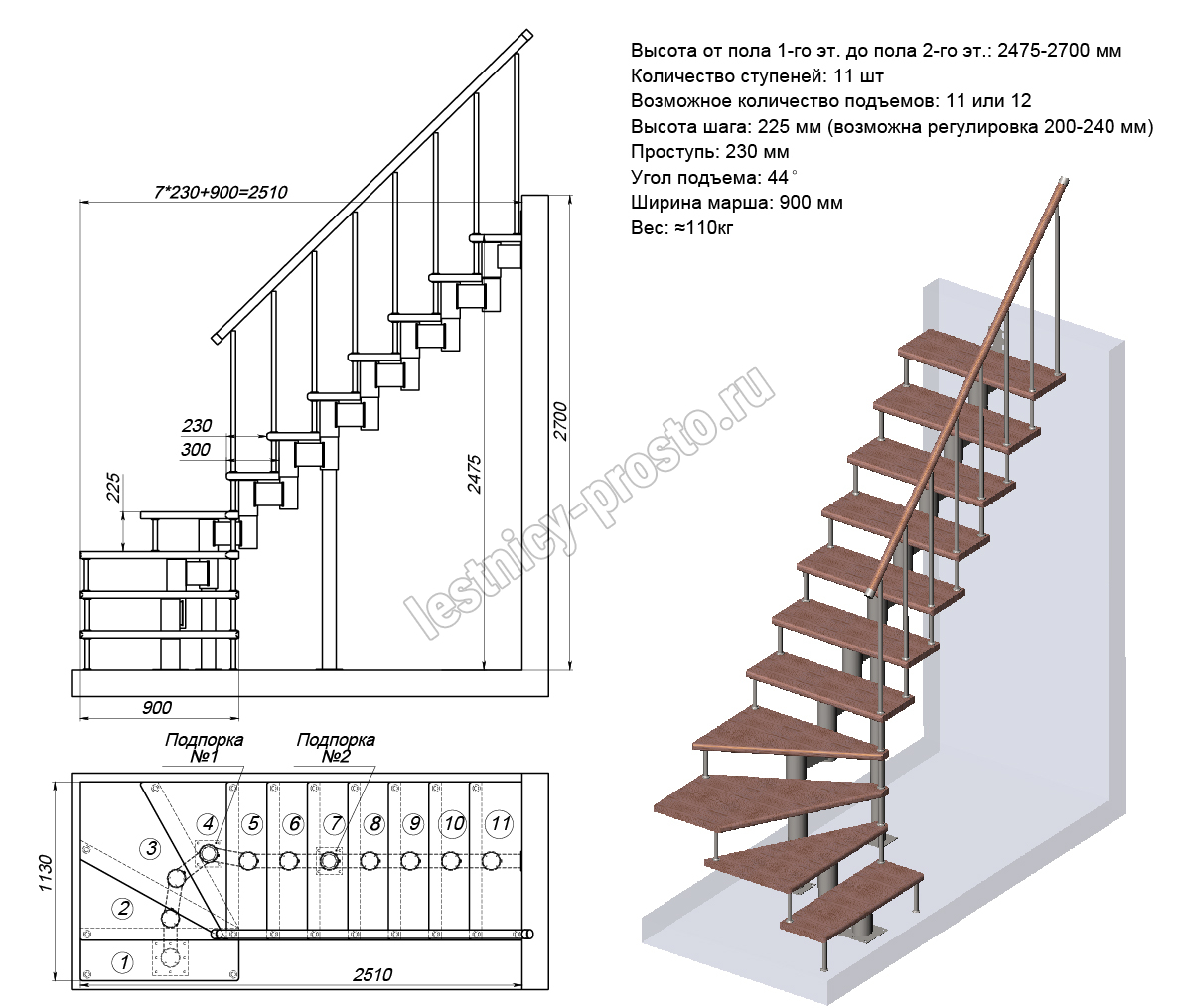 Стоимость указана для комплекта из модульного каркаса и деревянных ступеней без покрытия (ограждение можно выбрать отдельно)