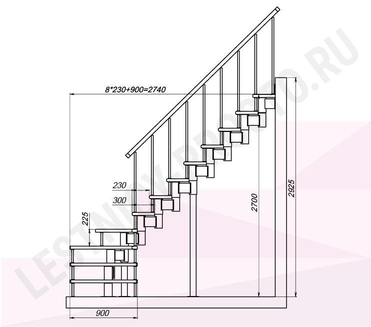 Стоимость указана для комплекта из модульного каркаса и деревянных ступеней без покрытия (ограждение можно выбрать отдельно)