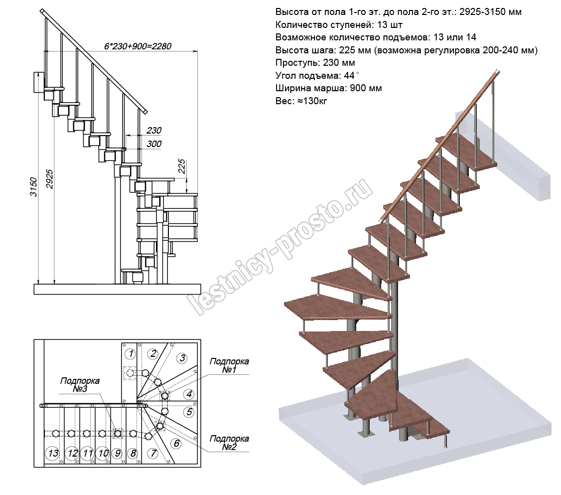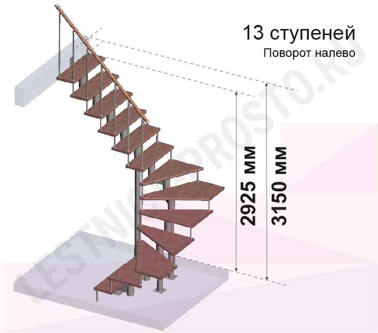 Высота лестницы 2925 - 3150 (13 ступеней) мм