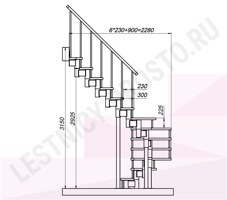 Схема и расчет указаны для шага 225 мм - мы рекомендуем эту высоту шага, как оптимальную для комфортного подъёма и экономии бюджета.