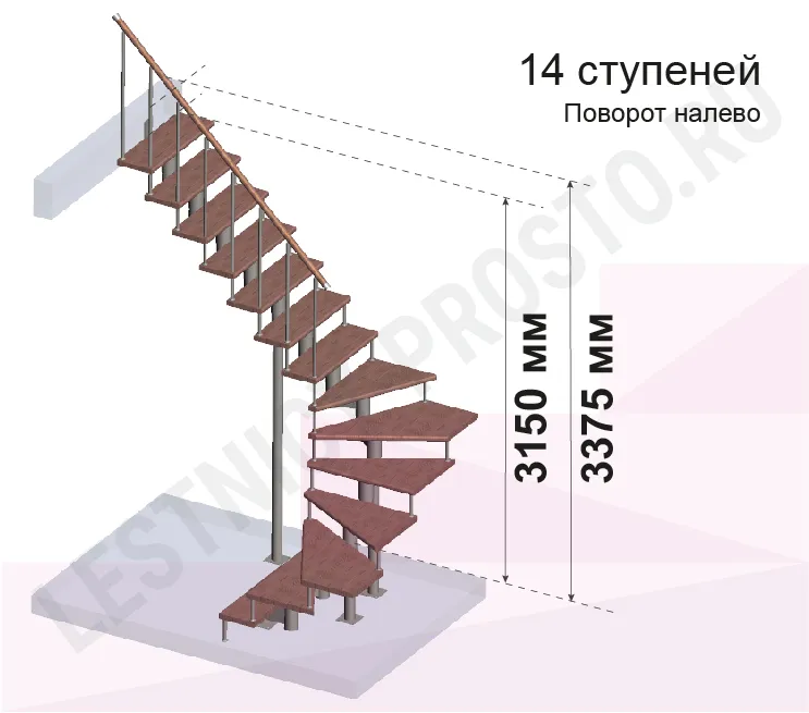 Высота лестницы 3150 - 3375 (14 ступеней) мм