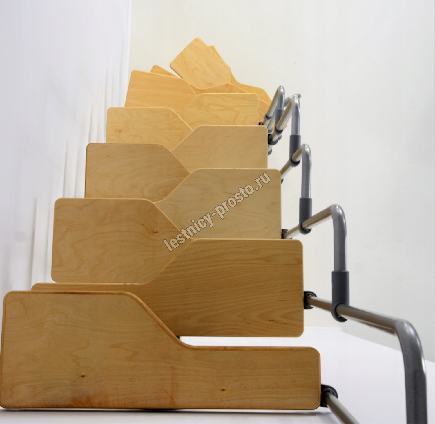 Ступени изготовлены из очень прочной покрытой лаком фанеры толщиной 30 мм.